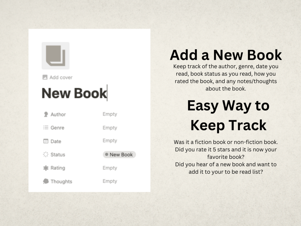 For book enthusiasts who want to go beyond organizing their personal collection, the template offers the ability to create an "Untitled Database" where you can customize and tailor your book tracking system to your specific needs.