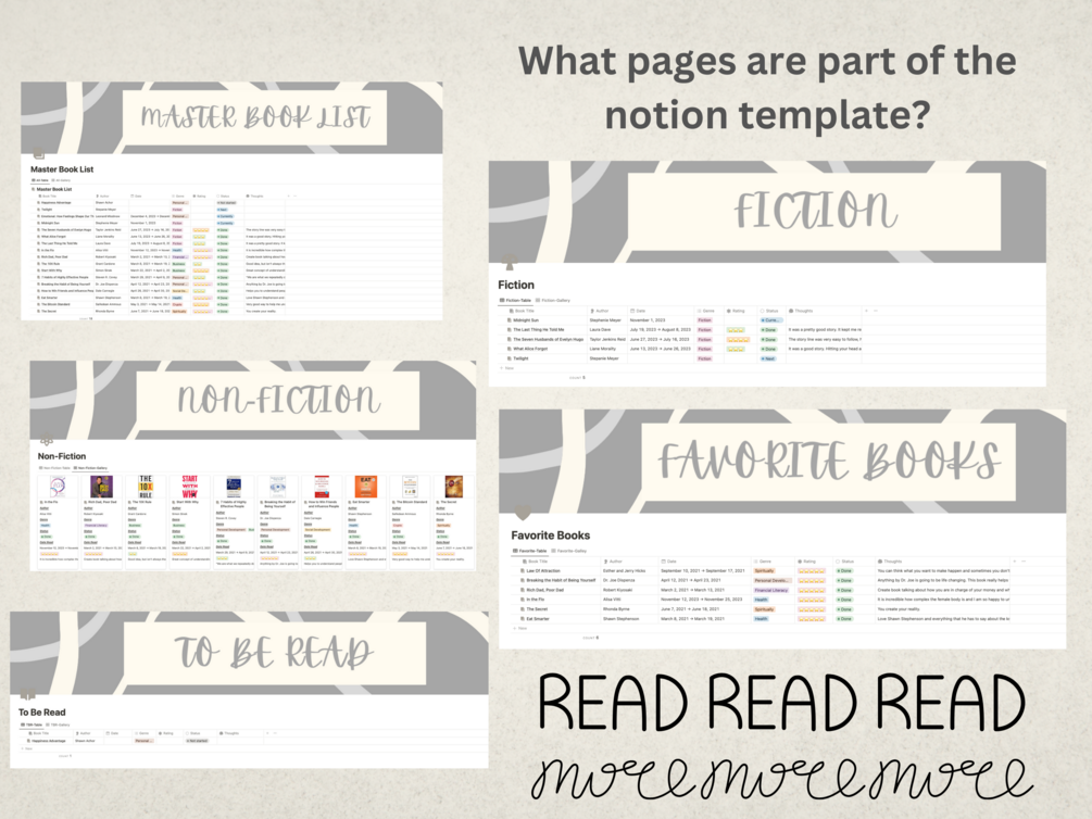 With the Book Library Template, you can create different categories for your books, such as "Favorite Books," "To Be Read," "Fiction," and "Non-Fiction." Each category is linked to a dedicated page where you can add and update your book entries.